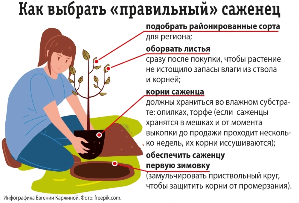 Александр Арефьев: Причин может быть настолько много, что для их перечисления не хватит пальцев рук. Я попробую выделить основные. Саженец гарантированно погибнет зимой, если вы посадили его слишком поздно. Многие садоводы ошибочно считают, что заниматься этим делом можно на протяжении всей осени. Это заблуждение! Срок для посадки плодовых деревьев — период, примерно равный одному месяцу до начала промерзания почвы. Если высадить саженцы поздно, то их корни не успеют, что называется, укрепиться, и они просто промёрзнут.