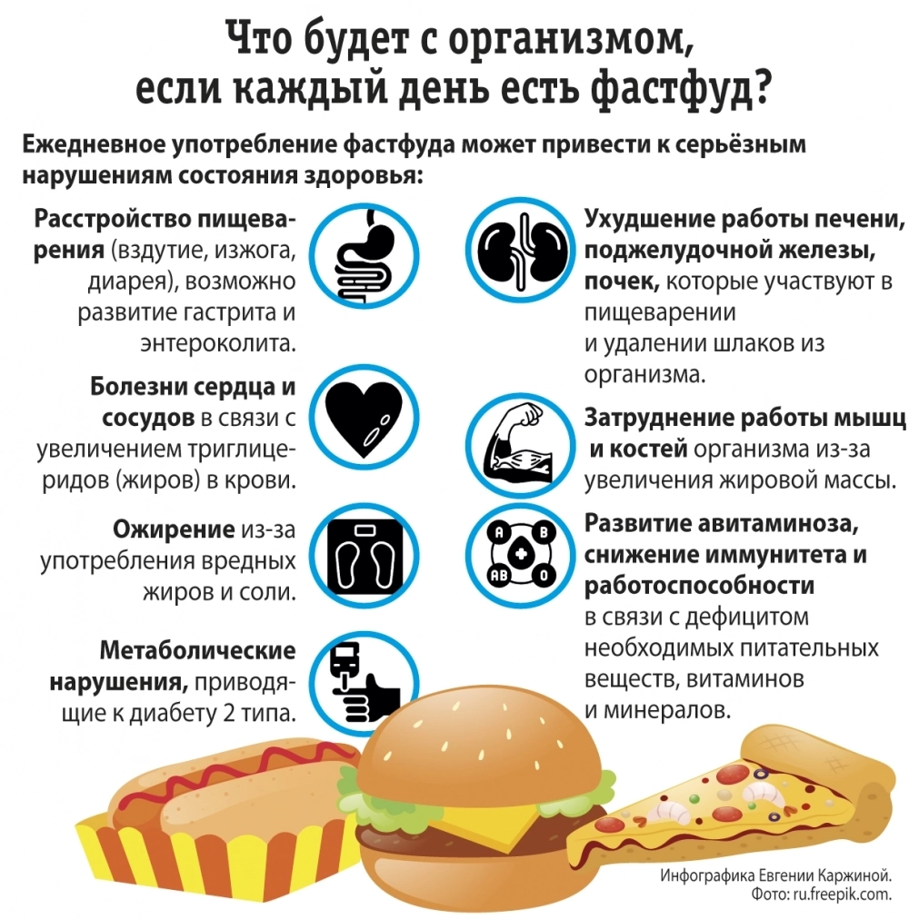 Что будет с организмом, если каждый день есть фастфуд? Инфографика