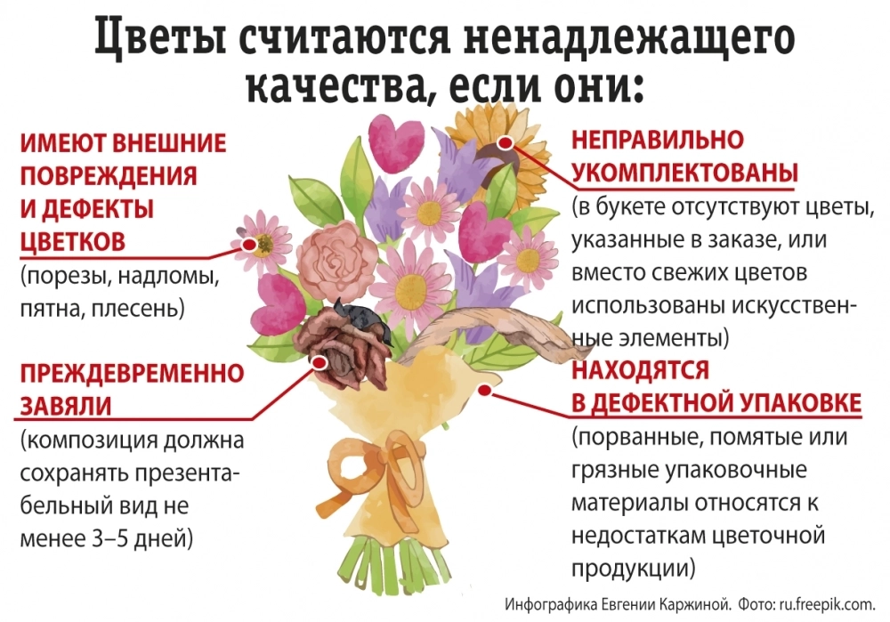 Юрист Ассоциации потребителей Пензенской области Станислав Яшин рассказал, какие цветы считаются ненадлежащего качества. За такой товар можно потребовать возврат денег.