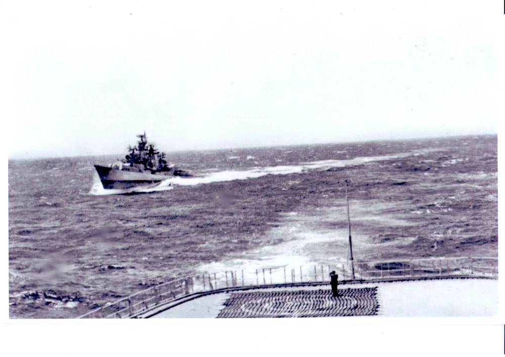 «Наша скорость позволяла нам подходить очень близко к авианосцу, — продолжает Ленин. — Когда включались все четыре газотурбины катера, над морем стоял сильный гул. Нас тогда прозвали „Поющим фрегатом“. Благодаря скорости и манёвренности мы даже встраивались в американский конвой, охранявший „Индепенденс“, видели, как на палубе матросы играли в футбол. Они звали нашего командира „на чай“, знали, какая у него фамилия. Мы глушили им связь, американцы не могли из-за нас определить местоположение, координаты того, куда им надо двигаться. Злились, но ничего не могли с этим поделать».