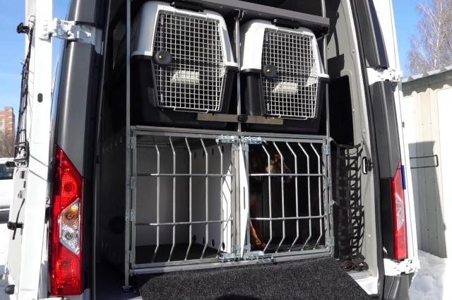 В автомобилях для кинологов есть печка, кондиционер, ящики для хранения вещей, вентиляция, отсеки для собак. Также в авто предусмотрен автоматический подогрева антифриза и топлива.