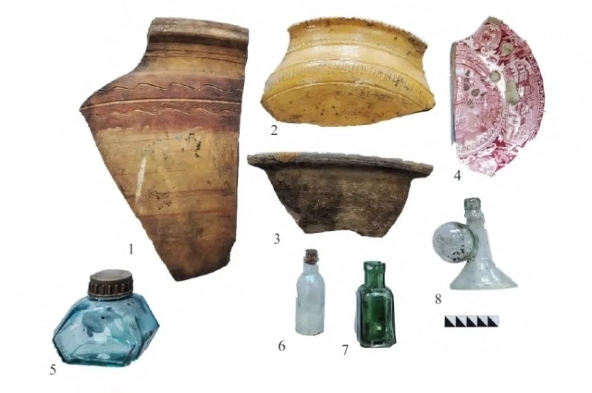 В результате были обнаружены нательные кресты, стеклянные сосуды, гильзы, фрагменты керамических, и стеклянных сосудов, фрагменты фаянсовых изделий, кости животных, пряжки ременные.