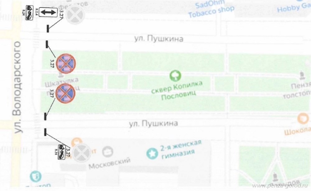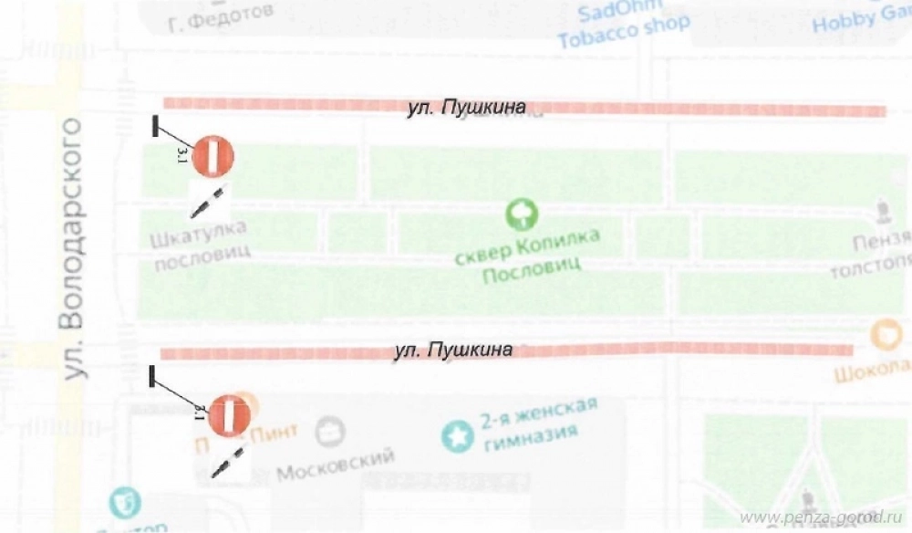 8 мая с 22:00 до 23:00 9 мая запретят движение транспорта на улице Пушкина от Володарского до Московской.
