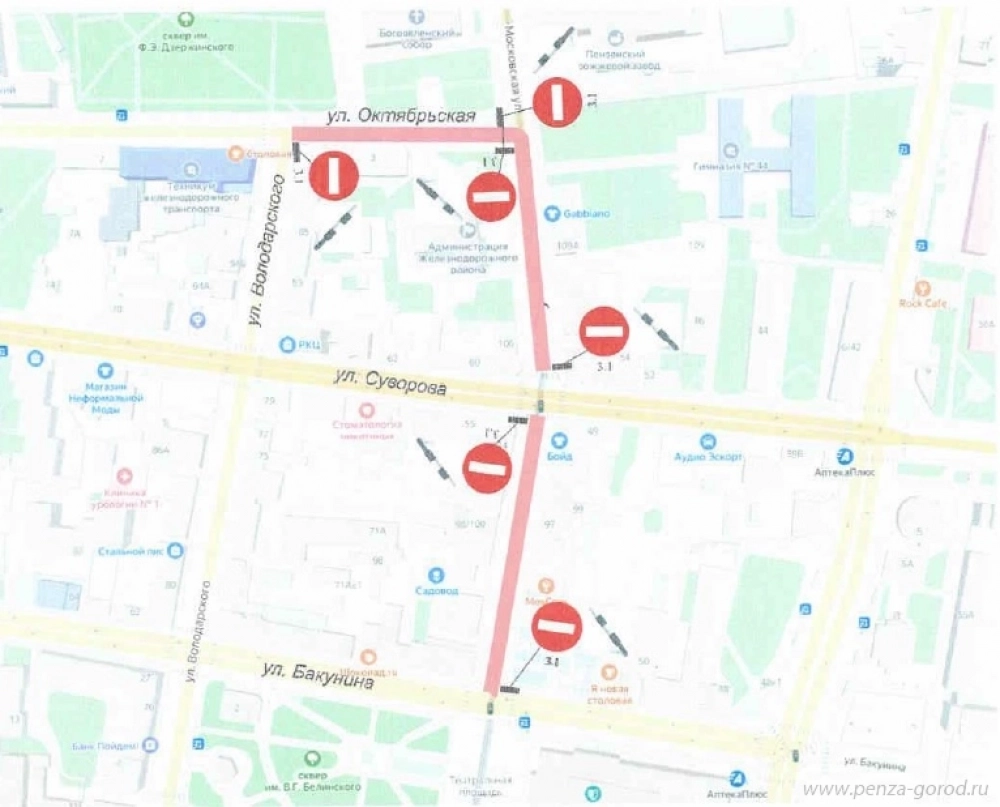 С 12:00 до 14:30 21 сентября запретят проезд на улице Октябрьской от улицы Володарского до улицы Московской, на улице Московской от улицы Октябрьской до улицы Бакунина.