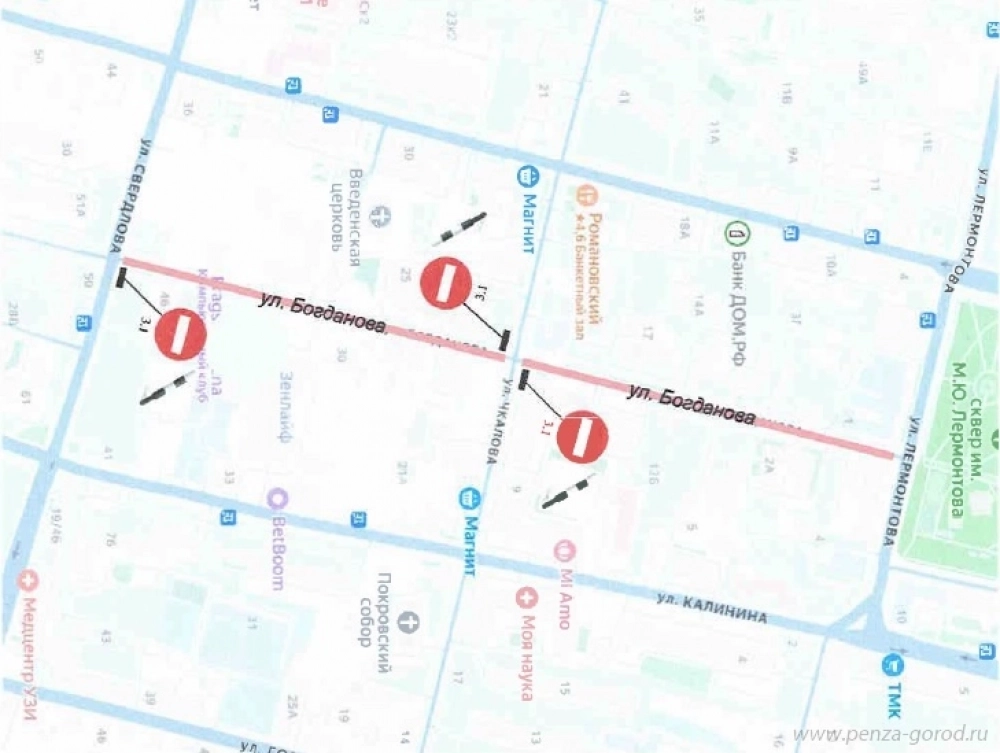 С 13:00 до 14:30 21 сентября ограничат движение на улице Богданова от улицы Лермонтова до улицы Свердлова.