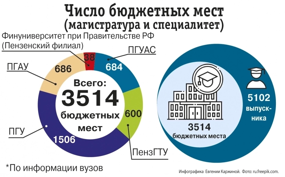 Число бюджетных мест в пензенских вузах в 2025 году. Инфографика