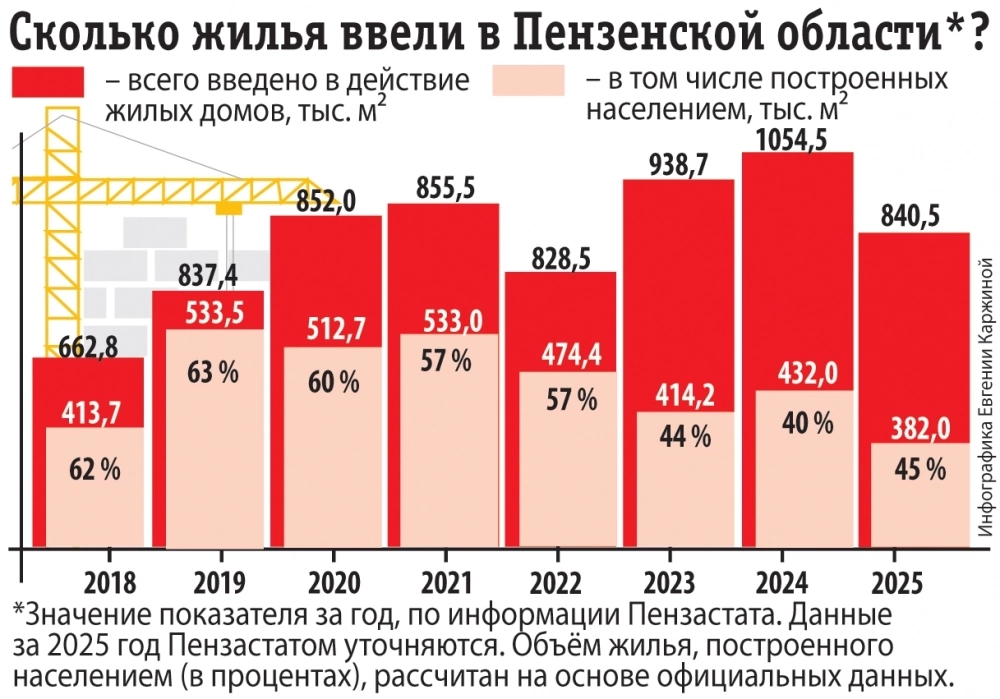 Всё сложно не только с многоквартирными зданиями. По данным Пензастата, в прошлом году чаще всего сдавали дома в 1–3 этажа, индивидуальное жилищное строительство составило 45 %. Несколько лет назад эта цифра переваливала за 60 % — граждане брали дело в свои руки, чтобы обуздать рост цен. Но подорожавшая ипотека и здесь породила проблемы. Редакция penza.aif.ru писала о жителях, которые пытались купить в Бессоновском районе коттеджи у застройщика: новоселье так и не справили, а вложенные деньги не могут получить даже через суд. Судебные приставы второй месяц не отвечают на редакционный запрос о том, когда же будут взысканы суммы.