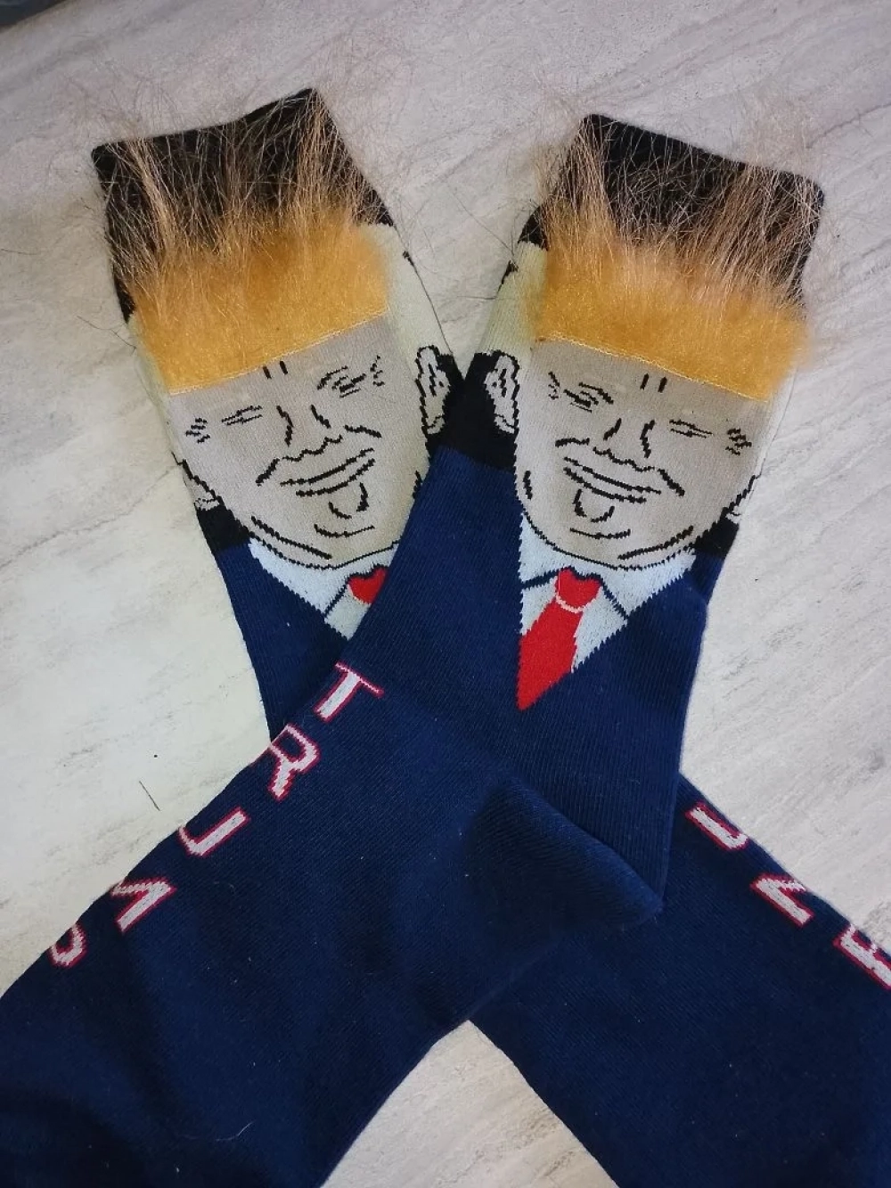 Например, одна из знакомых корреспондента penza.aif.ru преподнесла ему в презент носки, которые по вполне объективной причине он никогда не наденет. Дело в том, что на подъеме трикотажных изделий изображен президент США Дональд Трамп. И это не просто рисунок, а вполне себе объемная картинка — с приклеенными рыжими волосиками, которые при ходьбе (наверное, так и задумано производителями) должны развеваться на ветру.