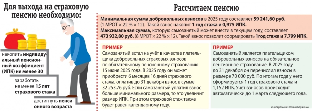 — Да, самозанятые могут накопить страховой стаж и увеличить индивидуальный пенсионный коэффициент за счёт добровольных взносов на пенсионное страхование.
