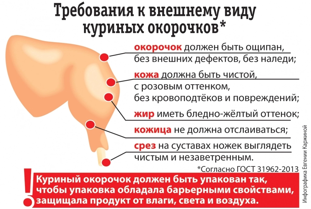 — Раньше никакими регламентами содержание жира в курином окорочке на самом деле не регулировалось. Сегодня ситуация изменилась. Согласно ГОСТу, количество жира в данном продукте не должно превышать 20 % от его общего веса. Это обусловлено как требованиями к качеству мяса, так и необходимостью защиты от окислительных процессов, на которые жир сильно влияет.