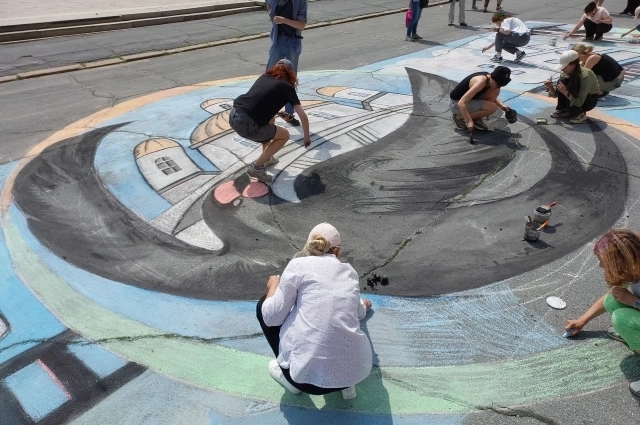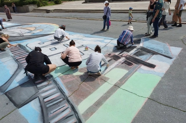 Кроме того, граждане могли принять участие в рисовании картины мелом на асфальте перед зданием правительства.