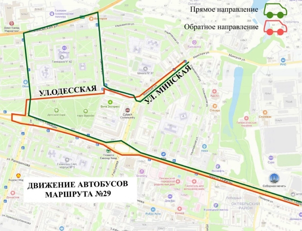 В Пензе в схему движения автобусов маршрута №29 «Успенский собор - ул. Минская» включили остановку «ул. Минская» с четверга, 29 мая.