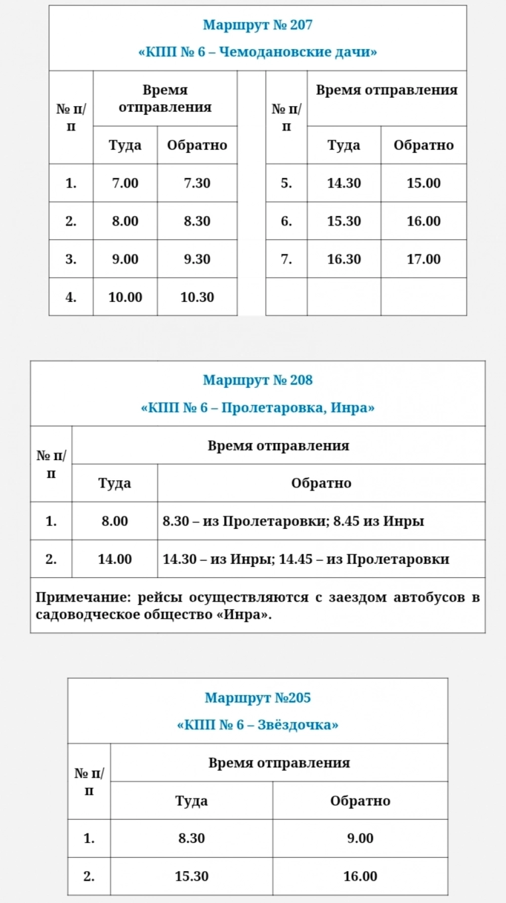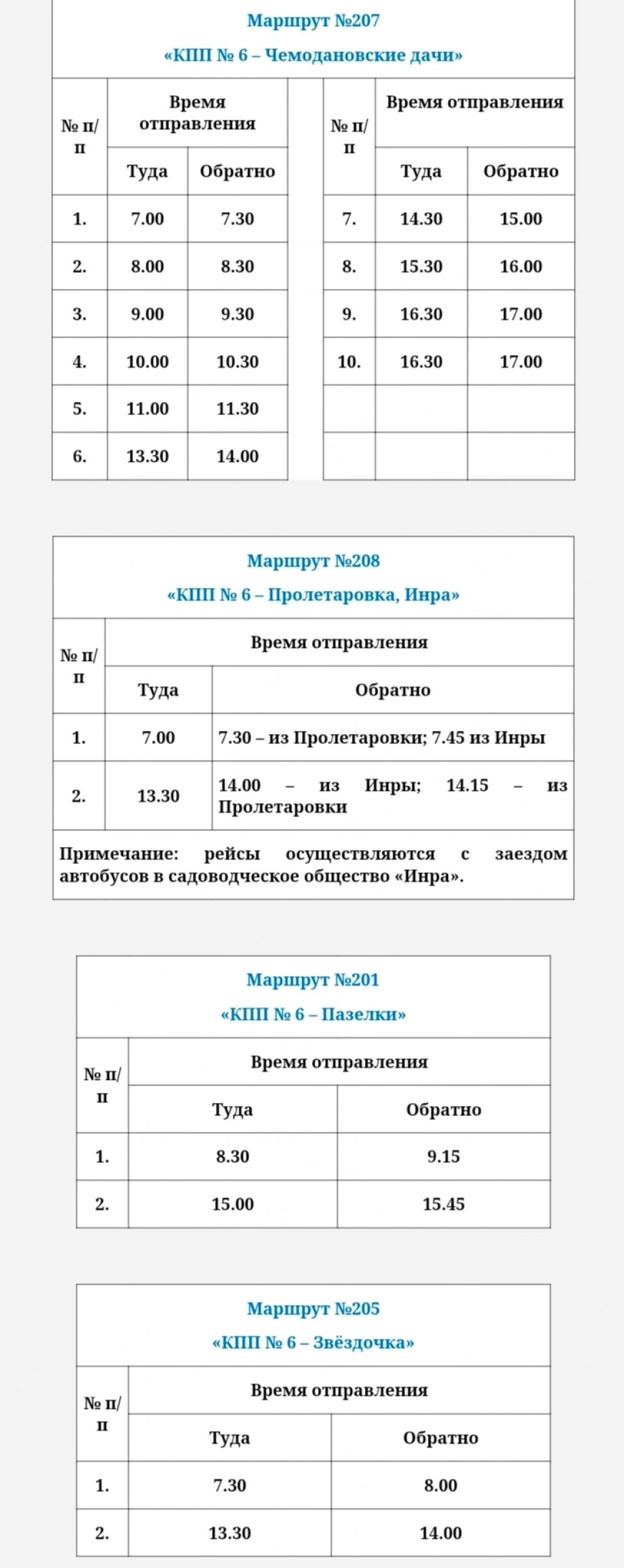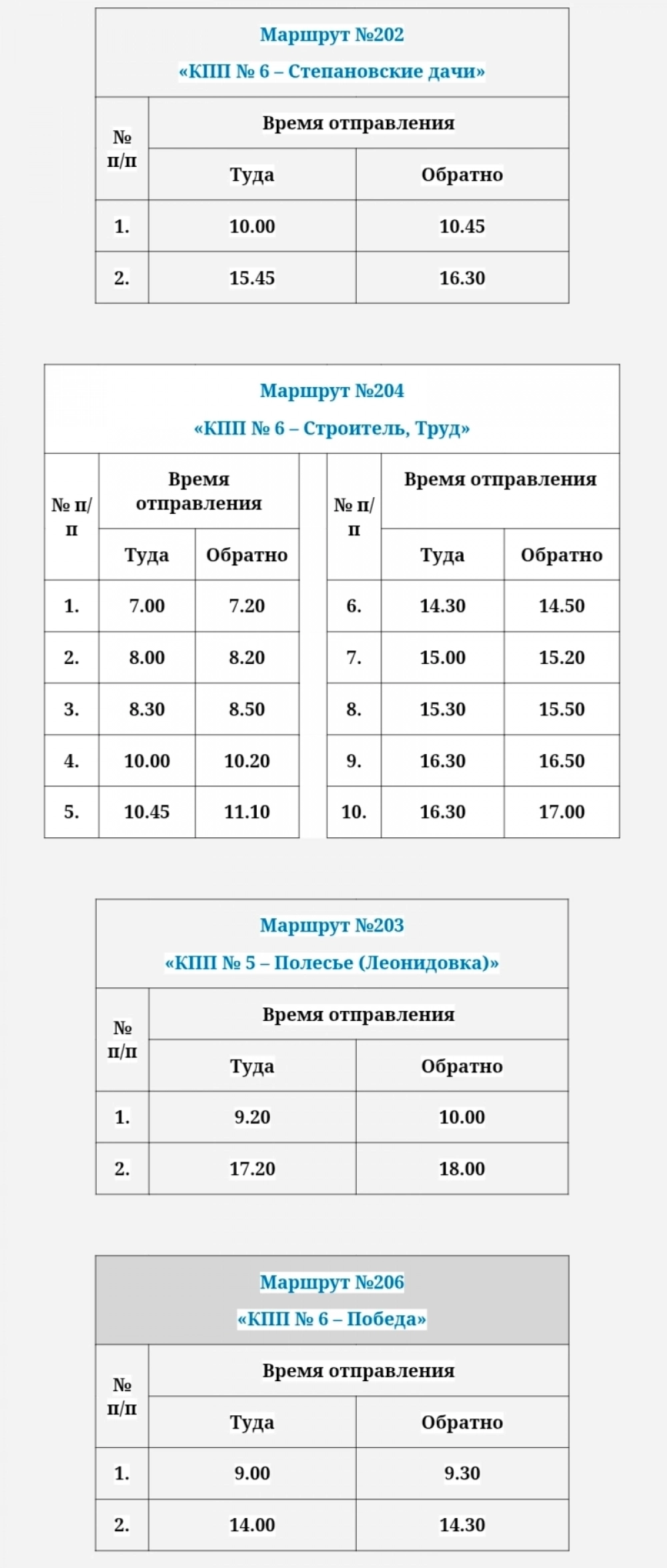 График движения общественного транспорта в направлении коллективных садов в рабочие дни во вторник и четверг: